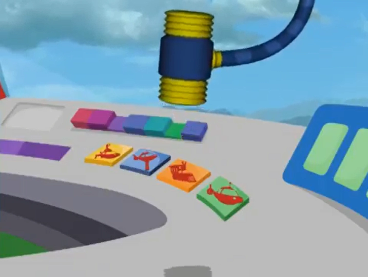 - Despite the fact that the Slammer Hammer looks like a typical squeaking hammer toy, it was still able to shatter Rocket's flying button.