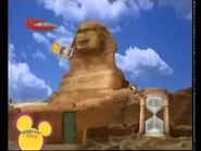 Soon, they heard the last puzzle piece which came from the Egyptian tree and bounce toward the three great pyramids, so Rocket puts out his pogo bouncer as Annie sings Aida and Rocket bounces over the first pyramid. Soon, they approach the second bigger pyramid so Annie sings Aida louder and longer which made Rocket bounce higher over the second pyramid! And soon, Rocket bounces towards the third biggest pyramid so Annie sings Aida as loud as she can and as long as she can! And soon, Rocket got the last piece of the puzzle! Then, Rocket put out his display screen and shows that the great sphinx warns the whole team to hurry back, because the time of the hourglass is almost expired and they're so far away or else, the puzzle won't do the magic! So they all had to fly super fast back to the great sphinx.