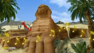 To open the music from the Golden Pyramid, First: You must go to the Obelisk and find the Golden Harp to begin the mission! Second: You must go to the Nile River and help the team to pat harder in order to make Rocket go faster by avoiding the Nile Crocodile and use the Golden Harp to open the statues of Ramesses II to let them pass. Third: You must meet the Great Sphinx to find which doors leads to the Golden Pyramid as the others have the snake and the scorpion. And fourth: You'll reach to the Golden Pyramid and help the team sing louder to open it and let the Hieroglyphics dance with them!