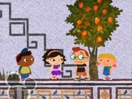 In The Mouse and the Moon after they caught Little Mouse's present, then they have to go through the Forest in Switzerland in order to get to the Matterhorn to give Little Mouse a present to the moon. Then, the Little Mouse carries the present into the Forest in Switzerland and then the whole team follow Little Mouse. Soon, they arrived at the art Ancient Greek and Roman Mosaics and then they heard some animals in the forest. Soon, Quincy heard Little Mouse, so they all look and listen at the grass, but it turns out to be a cricket which sounds like a strings orchestra. Then, they all look and listen inside the bushes, but it turns out to be a nightingale. So they all look and listen inside the tree and reveal to be Little Mouse who is hiding from an owl. Leo told that Little Mouse was worried that the owl will take Little Mouse's present for the moon while Quincy need to make a plan to sneak past the owl. Then June had a plan that they can sneak past the owl when he's not looking by clapping softly to the beat and when the owl open his eyes again, June had to stop clapping and freeze so the owl doesn't see the whole team and the Little Mouse. Soon, they all clap and move slowly and then the owl open his eye and they all stop clapping and freeze. and then they resume clapping after the owl's eyes shuts and then freeze once again after the owls eyes are open again. Soon, they continue clapping as the owl's eyes shut again and the open again as they whole team stop clapping and freeze. Soon, they resume clapping and past the owl. Soon, they made out of the art of Ancient Greek and Roman Mosaics and then the Forest in Switzerland and soon, they saw the Moon which is behind the Matterhorn. Then the moon sees the whole team as the whole team sings "See the moon!".