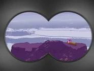 After they made it out of the dinosaur cave, Leo uses his binoculars to look for baby pterodactyl, and soon, Leo found baby pterodactyl who is on the log at the prehistoric volcano. Unfortunately, the prehistoric volcano is about to erupt and baby pterodactyl is so scared that he hide inside the log, so they have to fly super fast to get to the prehistoric volcano!
